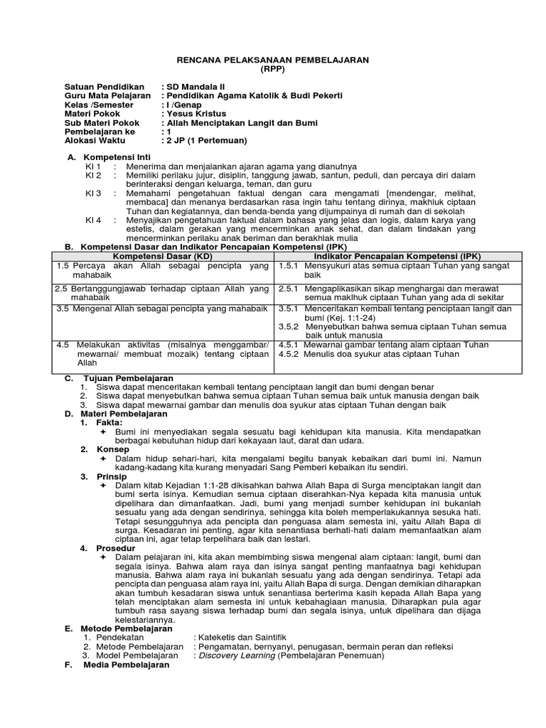 Langkah awal dalam menyusun perangkat pembelajaran, kita harus memiliki kalender pendidikan. Silabus pendidikan agama katolik dan budi pekerti sd_versi 140216 dowload. Berikut ini saya coba bagikan rpp 1 lembar kelas 1, 2, 3, 4, 5, 6 revisi 2020 untuk semester 1 dan 2 sebagai salah satu referensi bapak/ibu guru saat akan menyusun perangkat pembelajaran dengan versi format terbaru. Adapun rpp yang admin bagikan kali ini secara khusus buat bapak dan ibu guru yang. Selamat siang, terimakasih krn sdah berbagi perangkat pembelajaran.